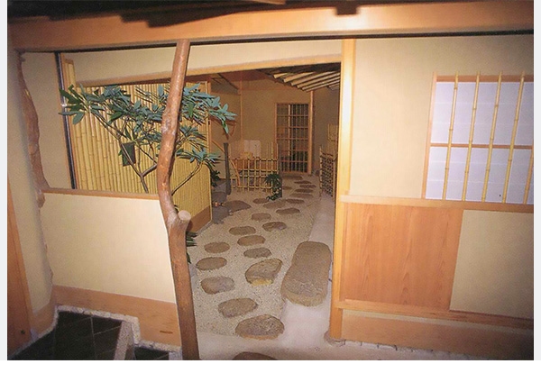 料亭の入口空間。和と洋とが混在しながら上品なインテリア