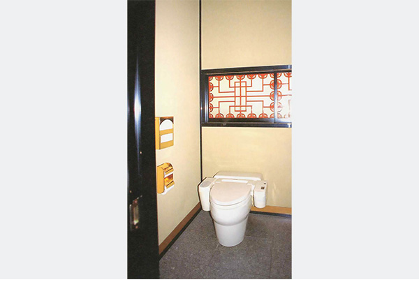 トイレの中には職人芸の施された飾りガラス障子と、朱塗螺鈿細工の扉がそのまま用いられ、以前のゆったりしたトイレの空間をそっくり再現しています。漆螺鈿の修復を担当した韓国の漆芸家全龍福氏によると、「漆は耐久性、湿気を調節する性質もあるので、トイレにはもってこいの材料だ」とのことです。