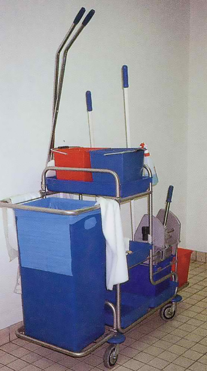 道具置き場の一番の問題点は「必ずしもすべてのトイレにない」ことです。4~5階建ての小さなビルの場合は、1階にしかないのが一般的。係の人は重いバケツやモップを抱えて、ビル内を何度も上下しなければなりません。たとえエレベーターがあっても一般の人への気がねから使わない傾向があるので、段階の上り下りは重労働。トイレの掃除以上に”移動”にエネルギーを使ってしまいます。 これとは逆に大規模なオフィスビルでは、各階ごとか1階おきに道具置き場があるのが普通ですが、1フロアに数カ所トイレがあるので移動のたいへんさは同様です。 また「場所」が不適当なケースもあります。たとえば、メンテ担当者泣かせなのが“外階段まわり”にある場合。冬の寒い日には道具の出し入れの度にふるえてしまいますし、雨の日には補充用のペーパーがぬれないよう気を使うそうです。 もうひとつ困るのが、道具置き場が男性トイレにしかない場合。作業員は女性が多いので、気まずい思いをすることが多いようです。 道具置き場はトイレ清掃に必要不可欠なものなので、理想的にはトイレごとに、最低でも1フロアに1ヵ所はほしいものです。フロア面積が広いビルでは、海外でよく見かけるキャスター付きのカートがあれば、道具や洗剤の持ち運びがラクになります。